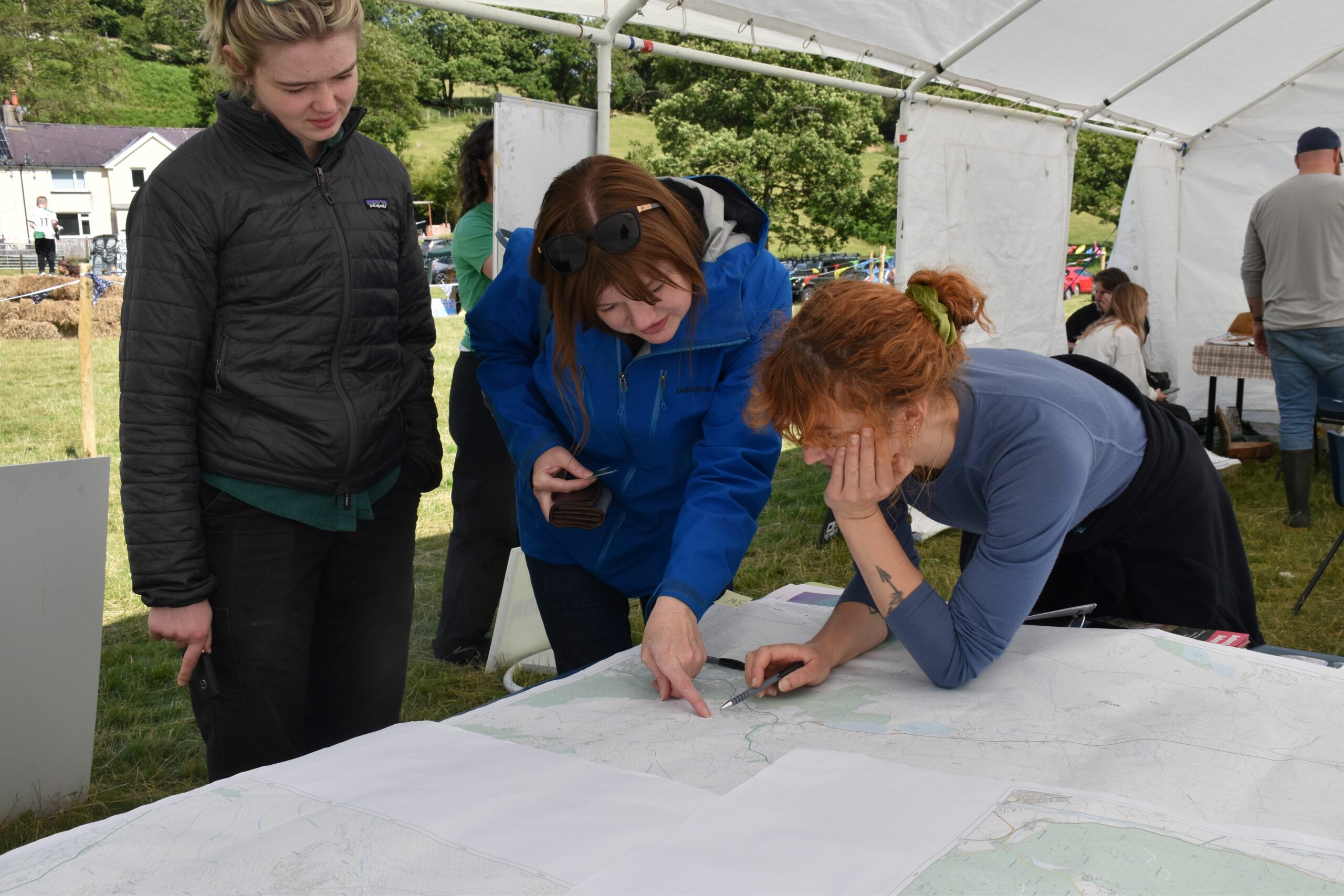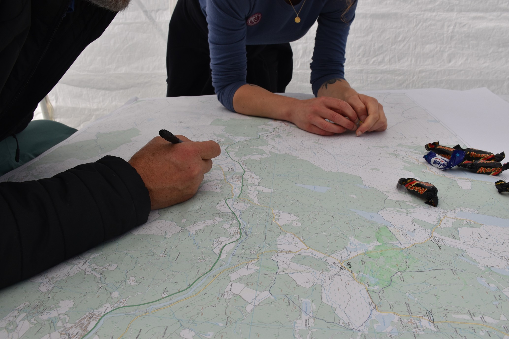 Carneddau Research Officer with a volunteer inspecting the map for local place names