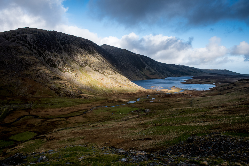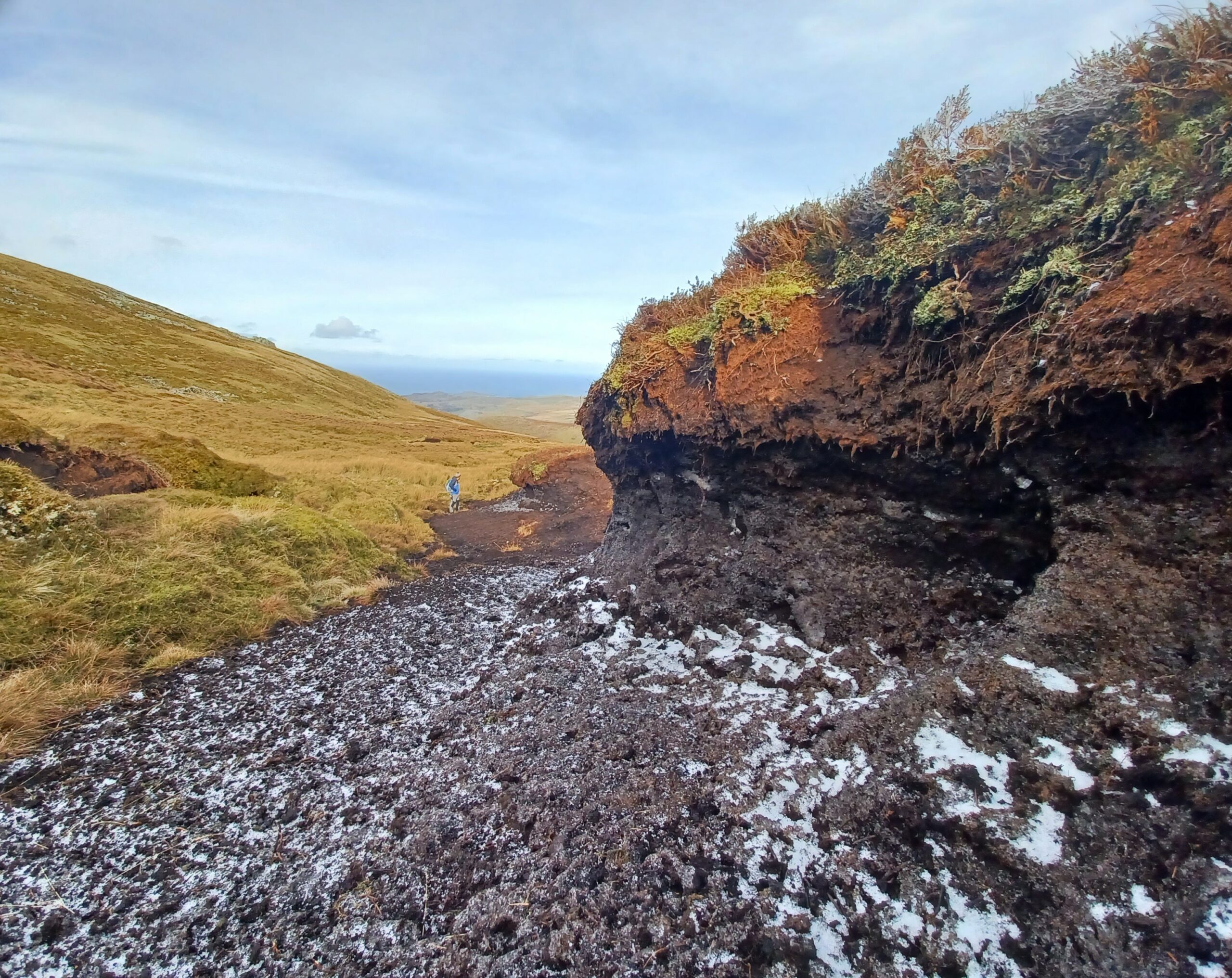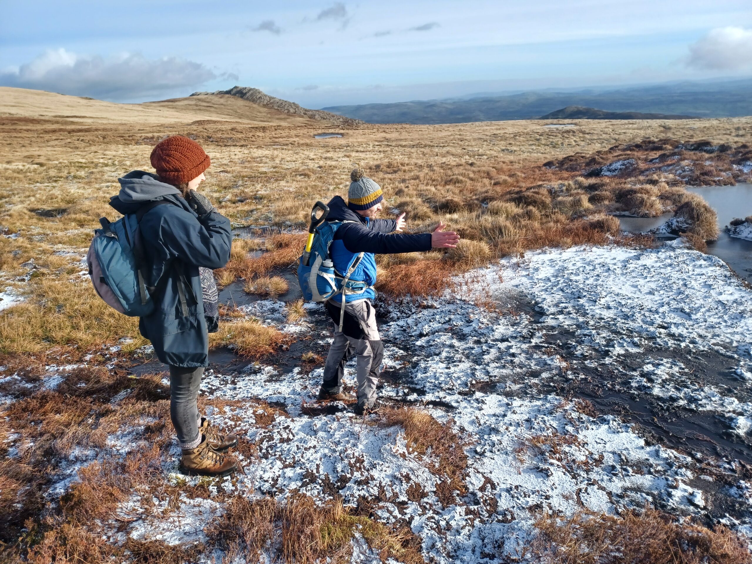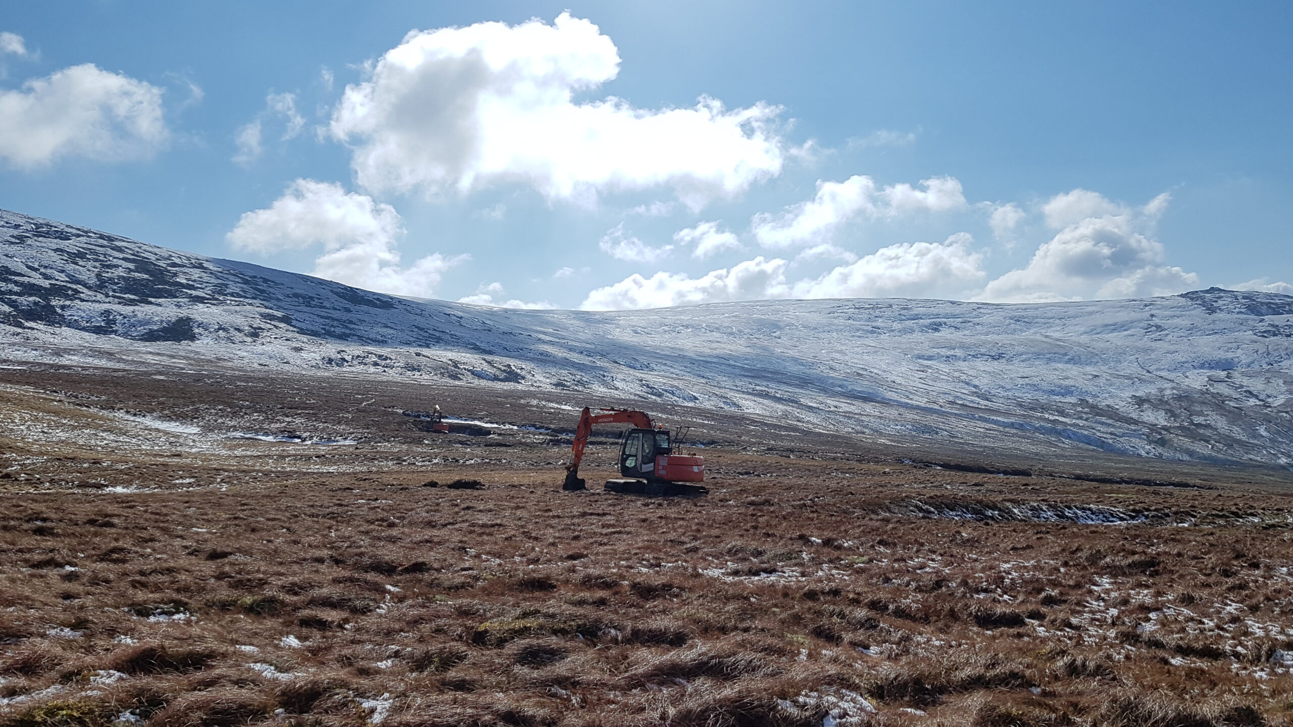 Mae adfer mawndir yn cynnwys sefydlogi ac ail-orchuddio ardaloedd o fawn sydd wedi erydu â llystyfiant. Dyma ddigar yn Llwytmor, Gorllewin y Carneddau, yn adfer ardal fawr sydd wedi’i erydu’n ddrwg drwy leihau llethr serth y cloddiau o fawn agored, a’u gorchuddio’n ôl â thyweirch. Bydd hyn yn helpu sefydlogi’r cynefin ac yn sicrhau nad yw’r mawn yn sychu ac yn rhyddhau carbon.