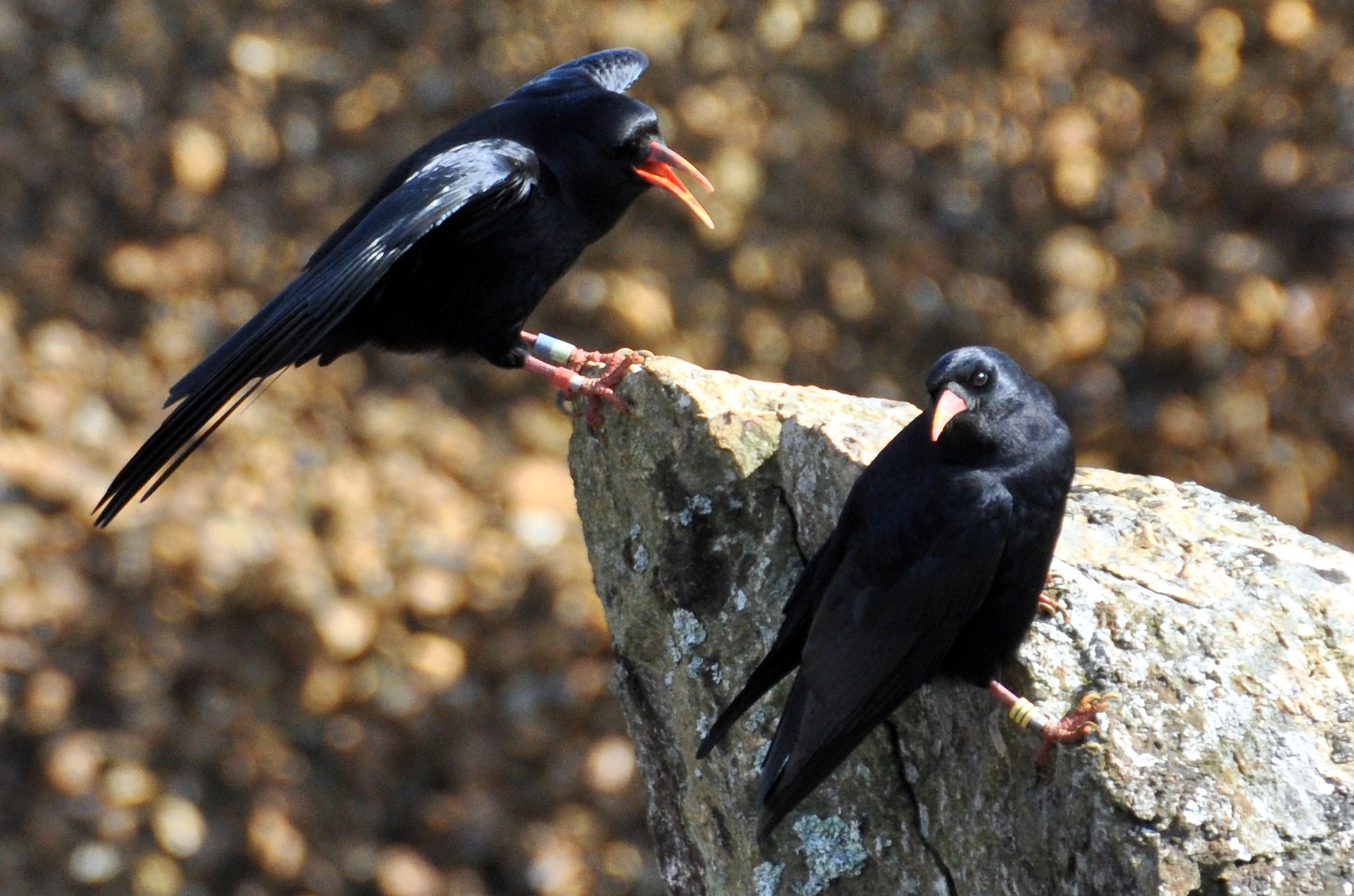 Mae bron i 30% o boblogaeth y Frân Goesgoch yn y DU i’w gweld yng Ngogledd-Orllewin Cymru, gyda phorfeydd ucheldirol y Carneddau yn cynnig cynefin bwydo hanfodol ar eu cyfer. Rydym yn olrhain poblogaeth y Frân Goesgoch i gael gwell dealltwriaeth o’u hecoleg a’u defnydd o gynefin drwy gydol y flwyddyn. Mae’r wybodaeth yma’n bwysig gan y bydd yn llywio cynlluniau cadwraethol y rhywogaeth tuag at y dyfodol. Mae deiet y Frân Goesgoch yn cynnwys anifeiliaid di-asgwrn cefn / infertebratau a geir eu canfod yn y pridd, y ddaear ac mewn tail, ond gellir dod o hyd i’r adar hefyd yn bwyta hadau ac aeron hefyd. Yn y Gaeaf, bydd y Brain Coesgoch yn aml yn mynd at yr arfordir i fwydo ar dwyni tywod a thraethau pan fydd hi’n anodd dod o hyd i fwyd ar dir pori.